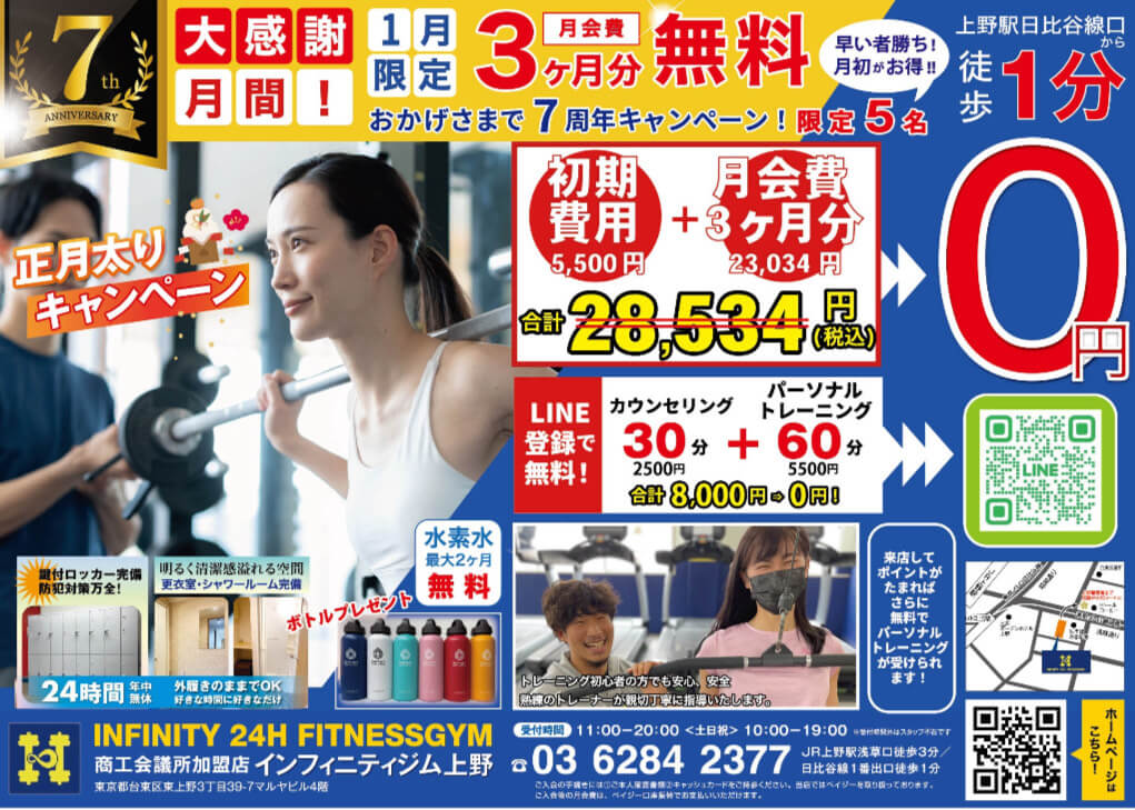 インフィニティ24フィットネスジムは、上野駅日比谷線口から徒歩1分!月額税込7,678円!
