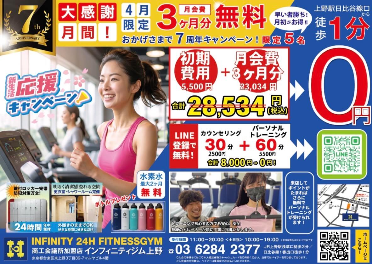 インフィニティ24フィットネスジムは、上野駅日比谷線口から徒歩1分!月額税込7,678円!